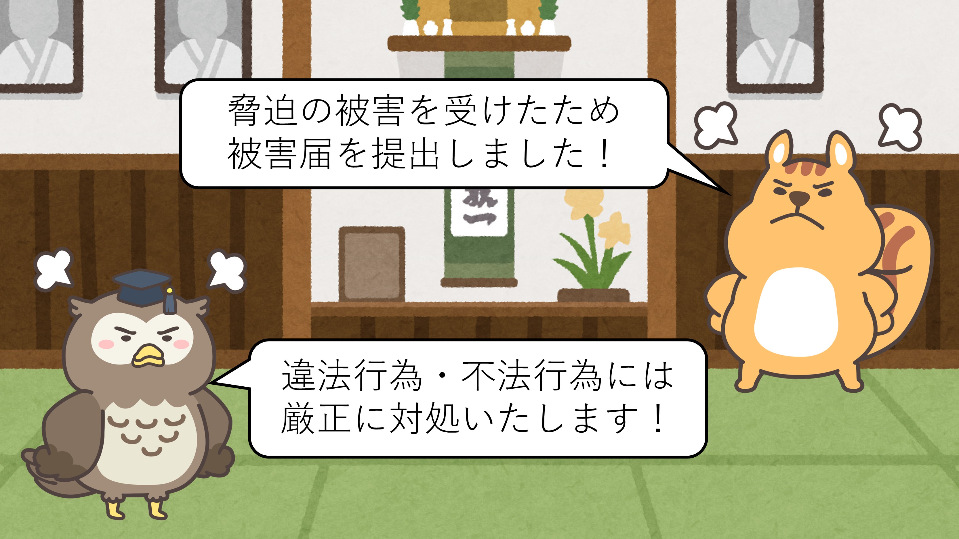 弊所が脅迫の被害を受けたため、被害届を提出しました。